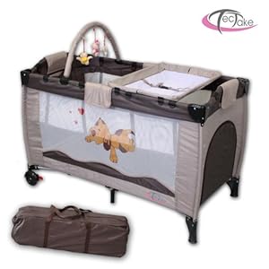 Lesen Sie mehr Details über Kinder Reisebett höhenverstellbar mit Babyeinlage Coffee bei Amazon